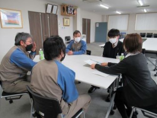 午前中は入社書類の説明を行い、午後は現場で働く先輩社員との交流会を行いました。