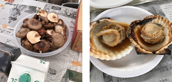 アグリ事業所産の原木しいたけや、ほたて、えび、さんま…そしてジンギスカン‼