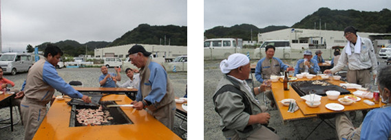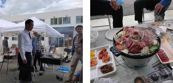 お肉を焼いたり、会話を楽しんだり…現場が違う従業員との交流があります。